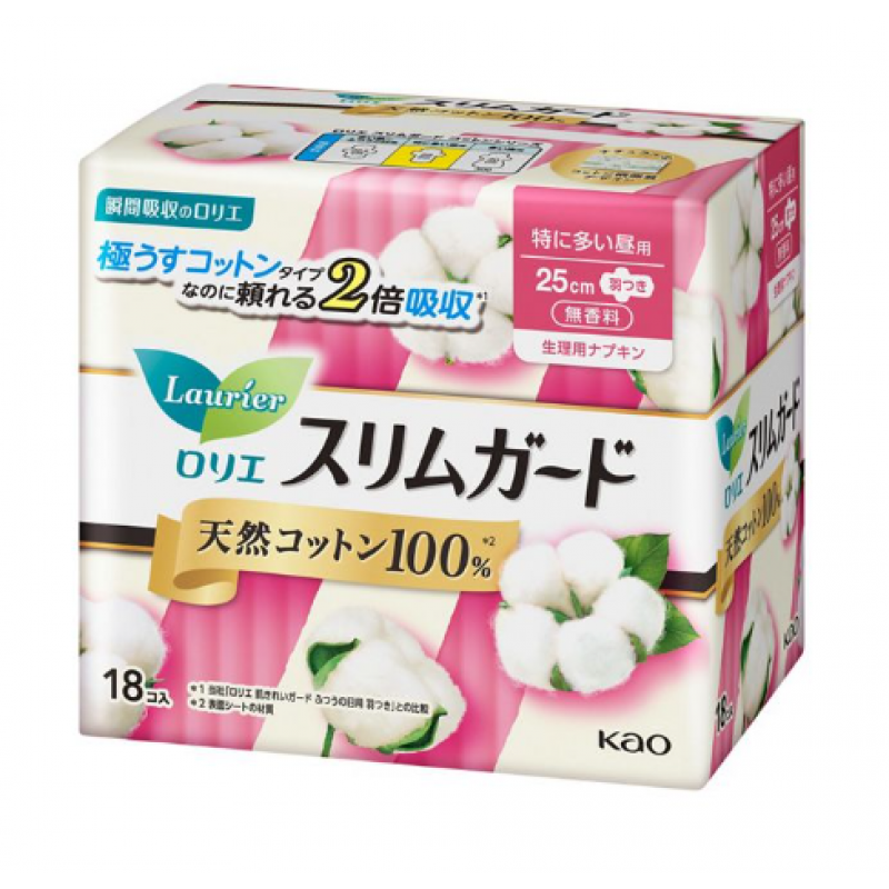 KAO花王 laurier乐而雅 S系列超薄100%天然棉瞬吸无香日用卫生巾 25cm*18枚