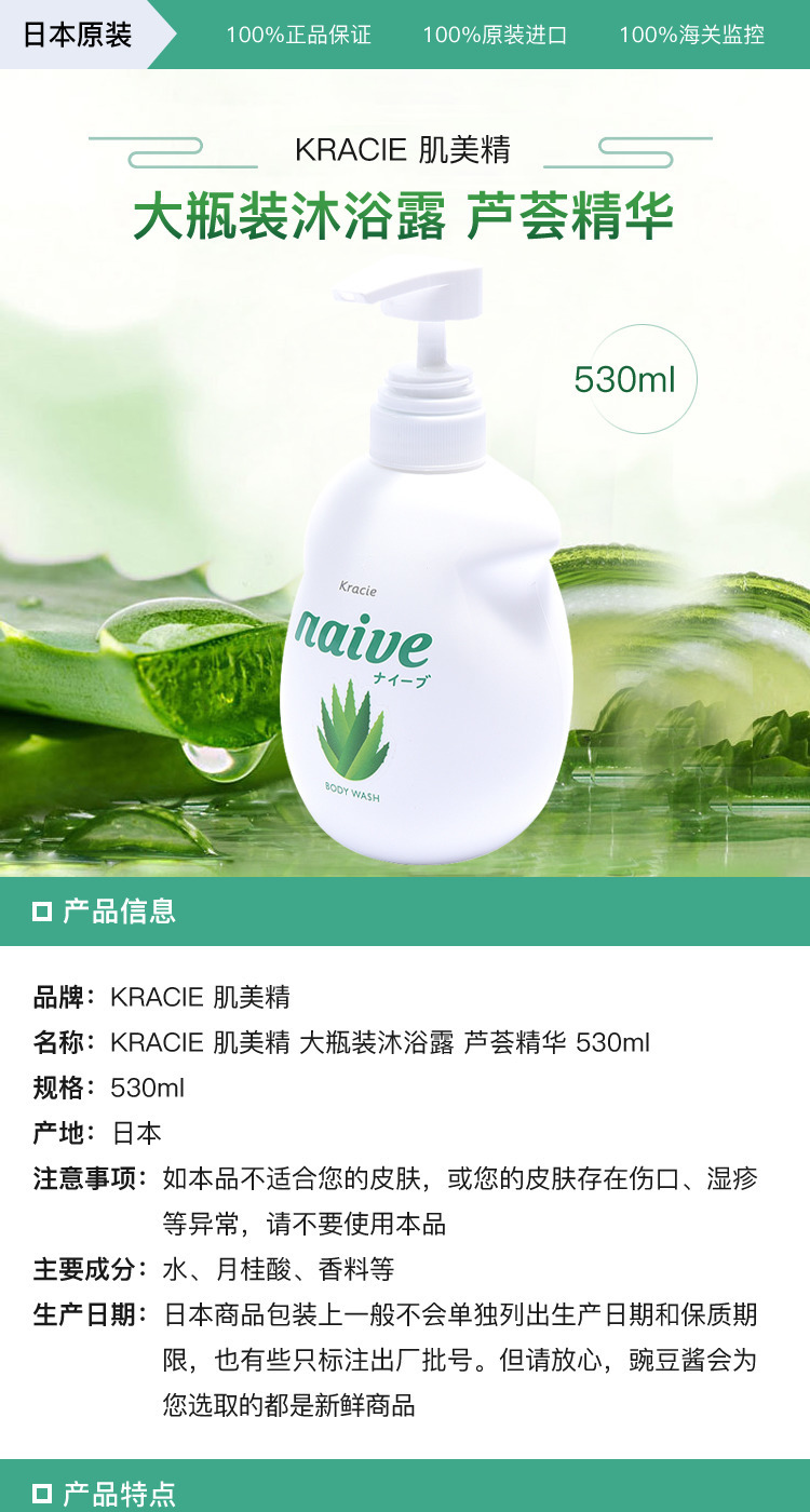 KRACIE肌美精 大瓶装沐浴露 芦荟精华530ml